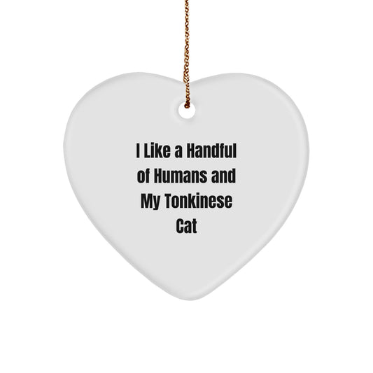 Funny Tonkinese Cat Lovers Gifts from Men to Friends - 'I Like A Handful Of Humans And My Tonkinese Cat' Heart Ornament for Christmas