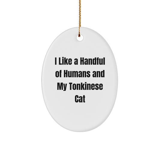 Tonkinese Cat Oval Ornament, Funny Quote 'I Like A Handful Of Humans And My Tonkinese Cat', Gifts from Family to Friends, Christmas Unique Gifts for Men, Women