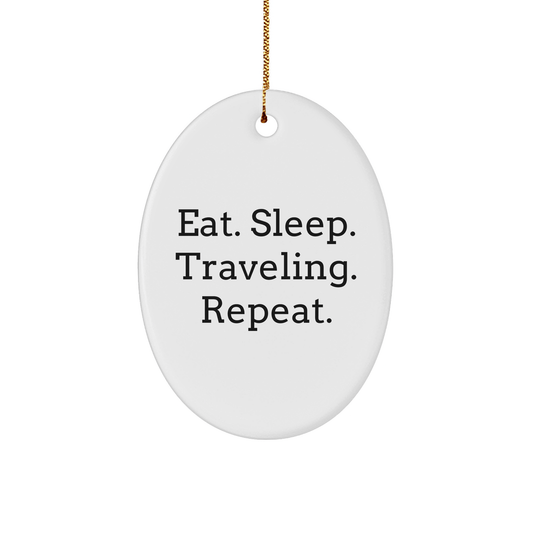 Traveling Gifts from Friends - Eat. Sleep. Traveling. Repeat. Oval Ornament for Men, Women, Coworkers, Family - Christmas Unique Gifts