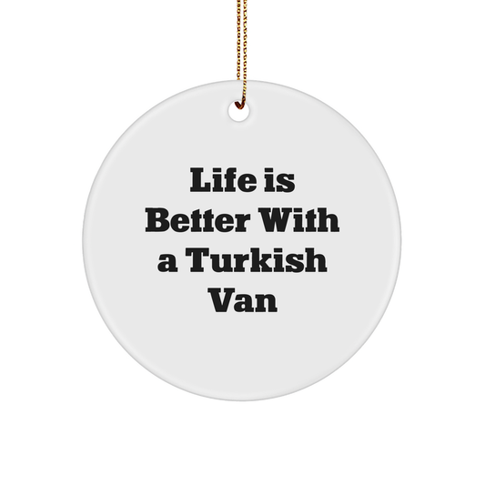 Turkish Van Cat Lovers Gifts from Family - Oval Ornament, White, 'Life Is Better With A Turkish Van' Quote for Turkish Van Cat, Christmas Unique Gifts