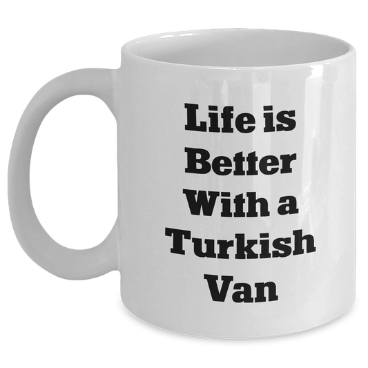 Funny Turkish Van Cat Gifts for Dad - White Coffee Mug with Life Is Better Quote, Gifts from Men to Family on Father's Day