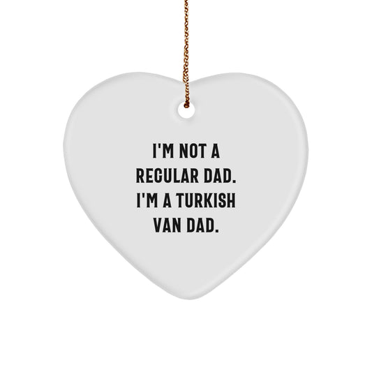 Funny Turkish Van Cat Dad Gifts from Family at Christmas - Heart Ornament with Quote 'I'm Not A Regular Dad. I'm A Turkish Van Dad.'