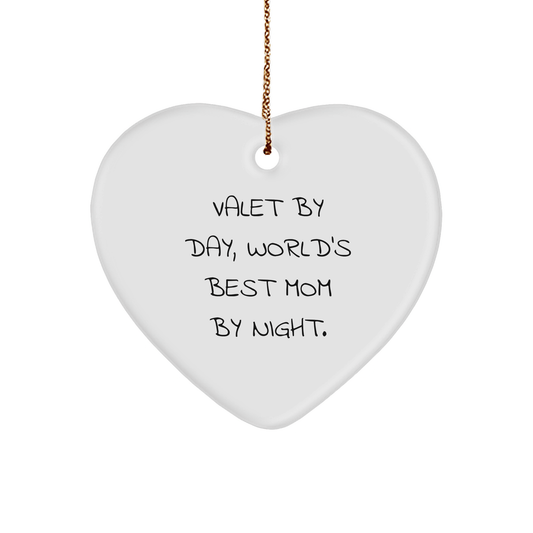 Valet Gifts, Heart Ornament, Funny Quote, Gifts from Mom, Gifts for Valet - 'Valet By Day, World's Best Mom By Night.'