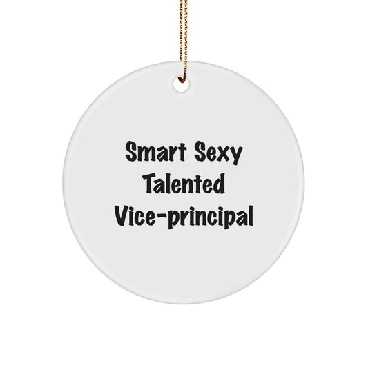 Funny Vice-Principal Gifts for Men, 'Smart Sexy Talented' Circle Ornament, White, 2.75" tall, Perfect for Christmas, Gifts from Friends, Family, or Coworkers