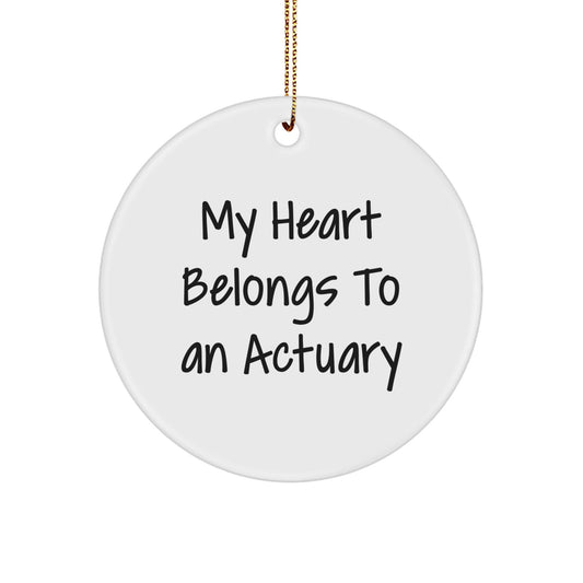 Actuary Heart Gifts from Friends for Christmas - Funny Circle Ornament, 'My Heart Belongs To An Actuary' Quote, Unique White Circle Ornament