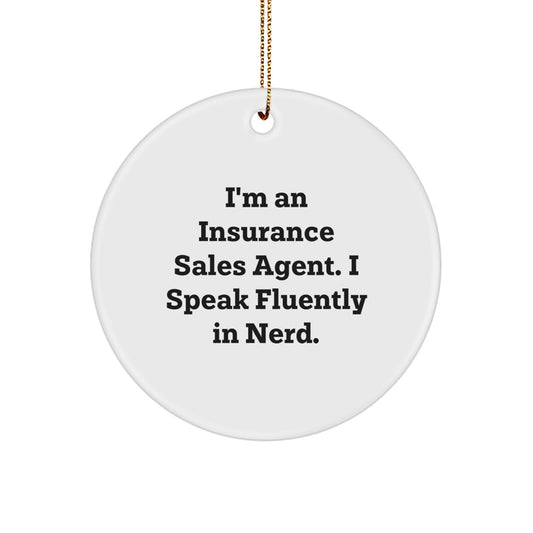 Funny Insurance Sales Agent Gifts from Men, Women, Friends, Coworkers, Family - 'I'm An Insurance Sales Agent. I Speak Fluently In genius.' Circle Ornament for Christmas