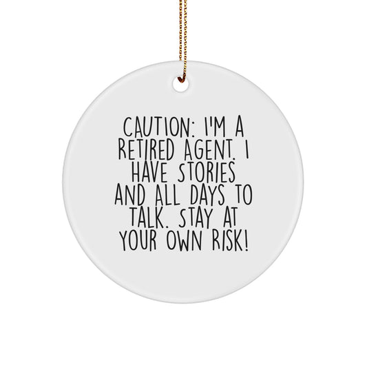 Agent Gifts from Friends - Caution: I'm A Retired Agent. I Have Stories And All Days To Talk. Stay At Your Own Risk! - Circle Ornament
