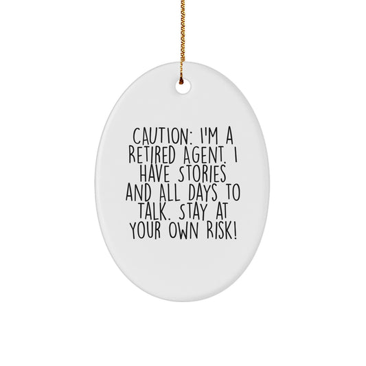 Funny Agent Gifts - Caution: I'm A Retired Agent. I Have Stories And All Days To Talk. Stay At Your Own Risk! Oval Ornament for Christmas