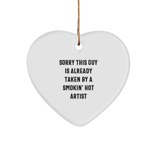 Funny Artist Gifts from Friends and Family for a Smokin' Hot Artist - Heart Ornament, Sorry This Guy Is Already Taken, Christmas Unique Presents