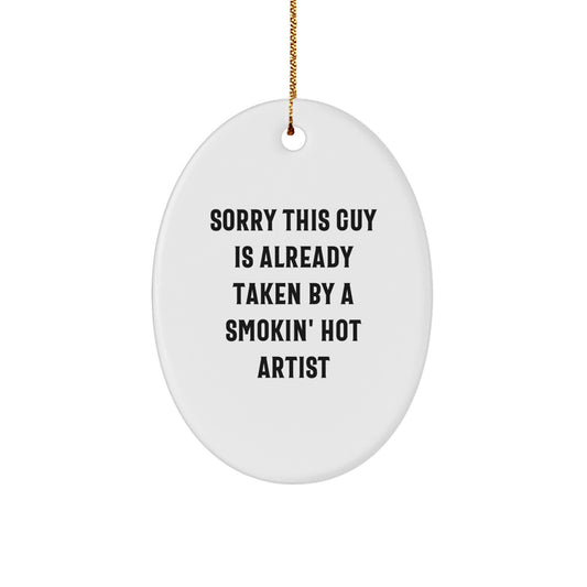 Funny Artist Gifts for Christmas - 'Sorry This Guy Is Already Taken' Oval Ornament from Friends, Coworkers, or Family