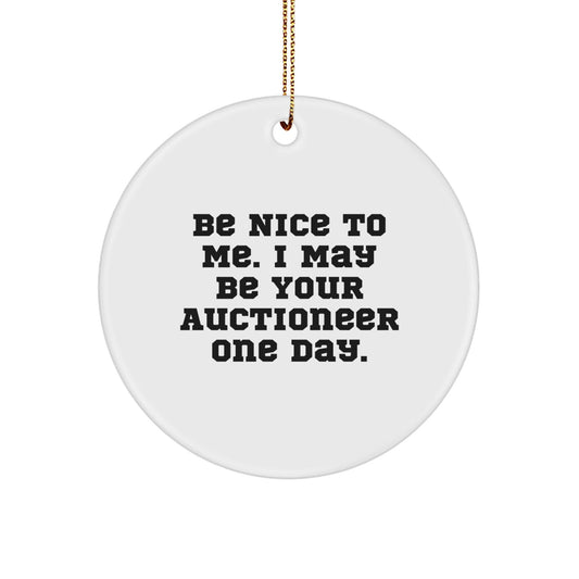 Funny Auctioneer Gifts for Men, 'Be Nice To Me. I May Be Your Auctioneer One Day.' Circle Ornament for Christmas, Gifts from Friends