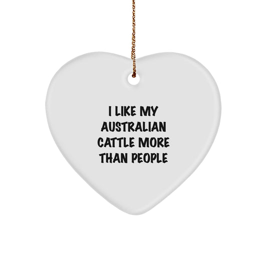 Funny Australian Cattle Dog Gifts from Friends, 'I Like My Australian Cattle More Than People' Heart Ornament for Christmas