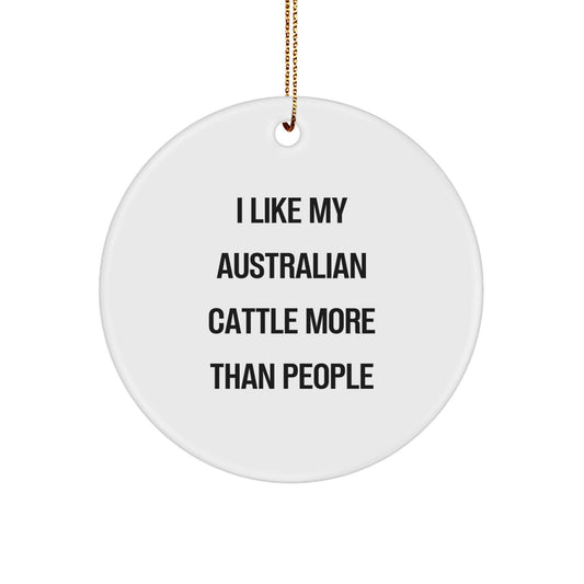 Australian Cattle Dog Lovers Gifts from Friends - 'I Like My Australian Cattle More Than People' Circle Ornament for Christmas
