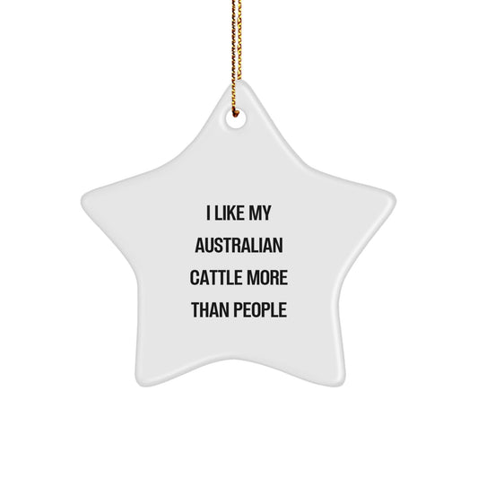 Australian Cattle Dog Star Ornament, Funny Quote Gifts for Men, Women, Friends, Family, 'I Like My Australian Cattle More Than People', Christmas Unique Gifts