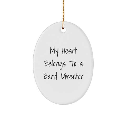Funny 'My Heart Belongs To A Band Director' Oval Ornament, Gifts from Friends, for Christmas, Band Director Gifts, Unique Presents for Her, Him, Family, or Coworkers.