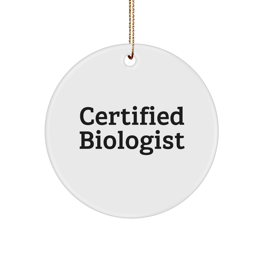 Funny Biologist Gifts for Men, 'Certified Biologist' Circle Ornament, White, Christmas Unique Gifts from Family