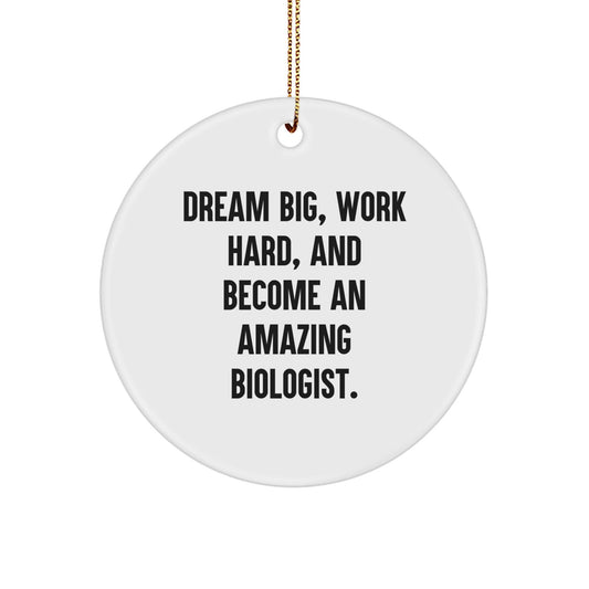 Gifts from Family to Biologist, 'Dream Big, Work Hard, And Become An Amazing Biologist.' Oval Ornament, White, 3.25'' tall, Perfect for Christmas