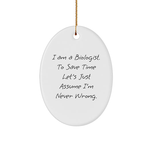 Funny Biologist Gifts for Friends - Oval Ornament 'I Am A Biologist. To Save Time Let's Just Assume I'm Never Wrong.' Christmas Unique Decorations from Friends