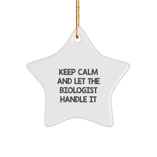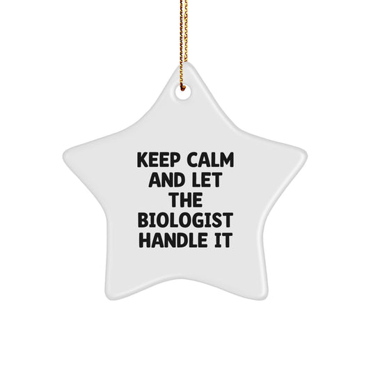 Funny Biologist Gifts, Star Ornament, 'Keep Calm And Let The Biologist Handle It' Christmas Unique Gifts from Friends to Biologist Men