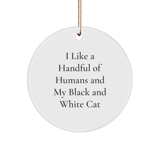 Funny Black and White Cat Gifts for Friends - Oval Ornament with Quote 'I Like A Handful Of Humans And My Black And White Cat' - Christmas Unique Presents from Men