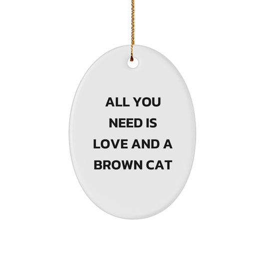 Brown Cat Oval Ornament, 'All You Need Is Love And A Brown Cat' Quote, Gifts from Men for Women, Unique Christmas Oval Ornament for Brown Cat Lovers