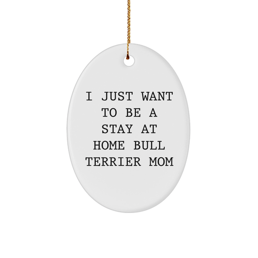 Bull Terrier Mom Gift, I Just Want To Be A Stay At Home Mom, Oval Ornament, White, 3.25" Tall, Christmas Unique Gifts from Family to Friends
