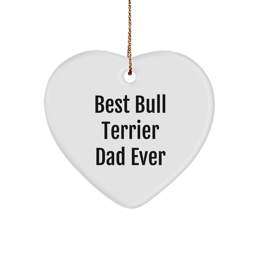 Bull Terrier Dog Lover's Heart Ornament, 'Best Bull Terrier Dad Ever' Quote, Gifts from Men to Friends, Family for Christmas