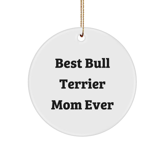 Funny Bull Terrier Dog Mom Gifts from Friends for Christmas Circle Ornament, 'Best Bull Terrier Mom Ever' Quote, White, 2.75'' Tall