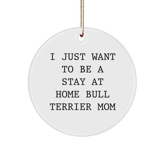 Funny Bull Terrier Dog Mom Gifts for Christmas - 'I Just Want To Be A Stay At Home Bull Terrier Mom' Circle Ornament from Family, Friends, or Coworkers