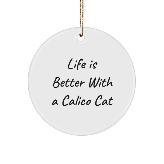 Gifts from Family and Friends for Calico Cat Lovers, 'Life Is Better With A Calico Cat' Funny Circle Ornament, White, Christmas Decorations