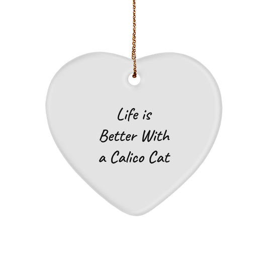 Calico Cat Heart Ornament | Gifts from Friends to Family for Christmas - Inspirational Calico Cat Lover Gift - Calico Cat Lover Gifts - Heart Ornament for Calico Cat Lover