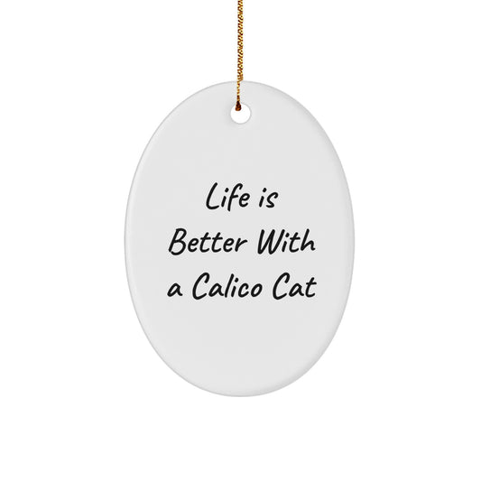 Calico Cat Oval Ornament Gifts from Friends - Life Is Better With A Calico Cat, Funny Quote Christmas Unique Gifts for Calico Cat Lovers
