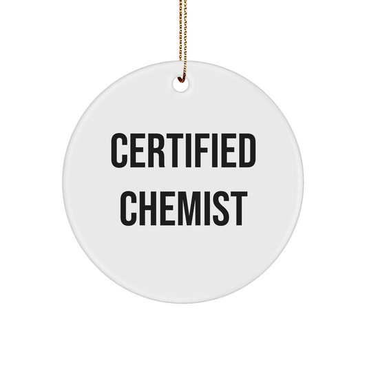 Funny Chemist Gifts from Friends - Certified Chemist Circle Ornament, Christmas Unique Presents for Chemist, White Circle Shaped, Durable MDF Material with High Gloss Finish