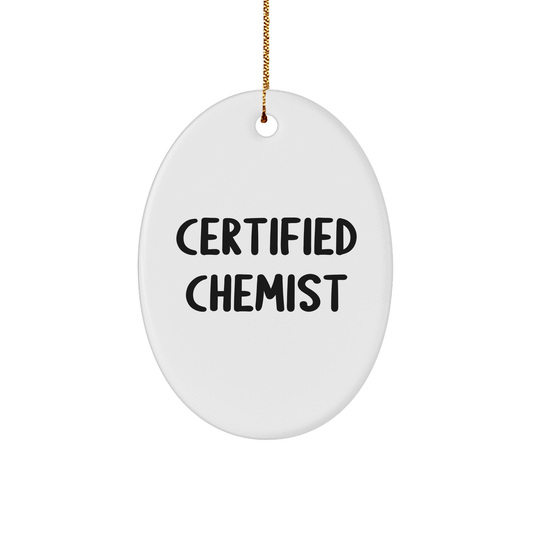 Funny Chemist Gifts from Friends for Christmas - Oval Ornament with Quote from Certified Chemist, 3.25'' Tall, Durable MDF with High-Gloss Finish