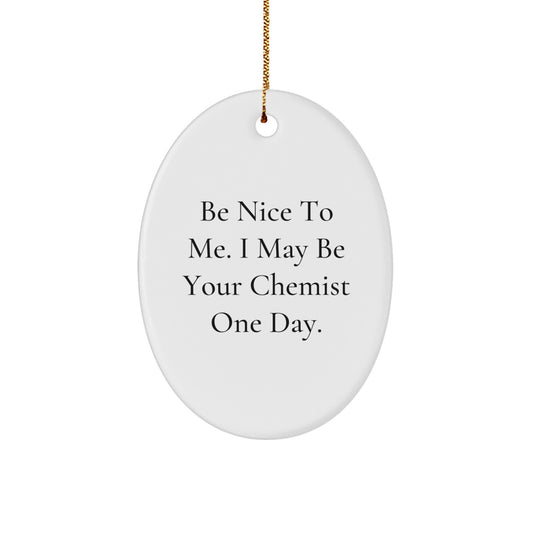Funny Chemist Gifts from Friends for Men - Oval Ornament with Be Nice To Me Quote - White Oval Shaped Christmas Unique Gift