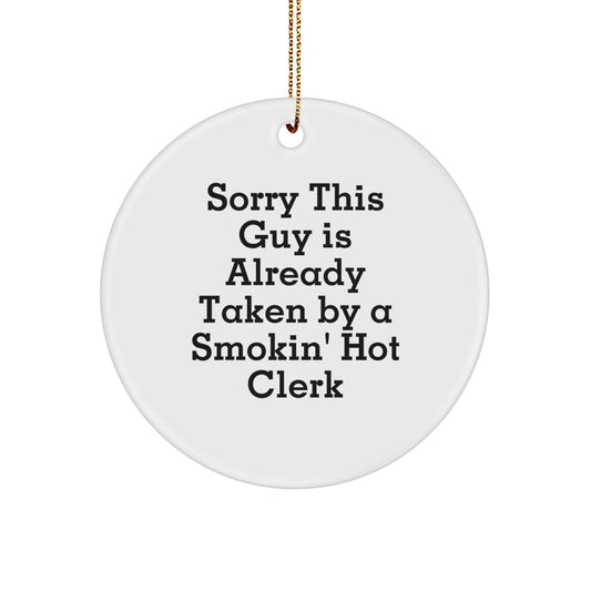Clerk Gifts from Friends, Funny Circle Ornament for Christmas Unique Gifts, Sorry This Guy Is Already Taken By A Smokin' Hot Clerk