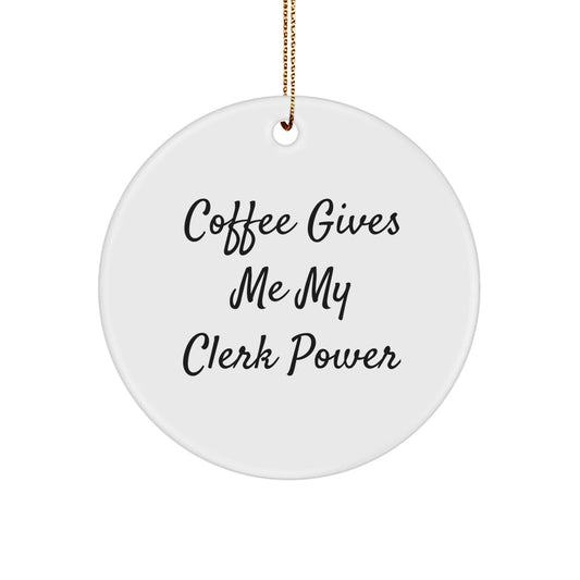 Funny Clerk Gifts from Friends for Christmas Circle Ornament - 'Coffee Gives Me My Clerk Power'