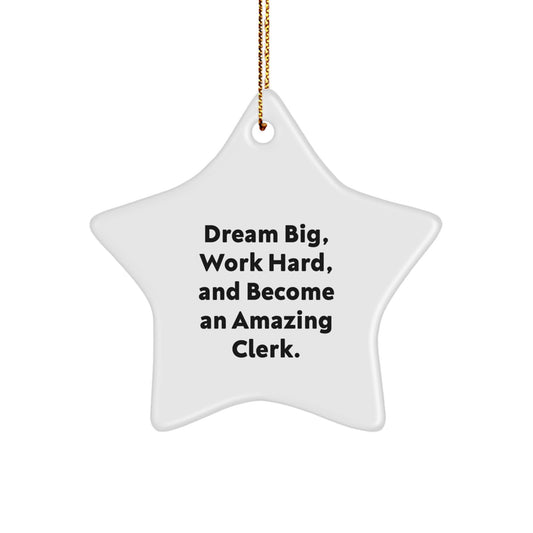 Inspirational Clerk Gifts for Christmas - 'Dream Big, Work Hard, And Become An Amazing Clerk.' Star Ornament Gifts from Friends or Family