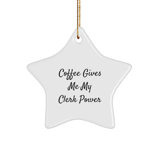 Clerk Gifts from Friends - Coffee Gives Me My Clerk Power Star Ornament for Christmas, Gifts for Clerks
