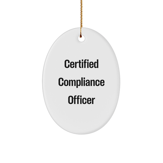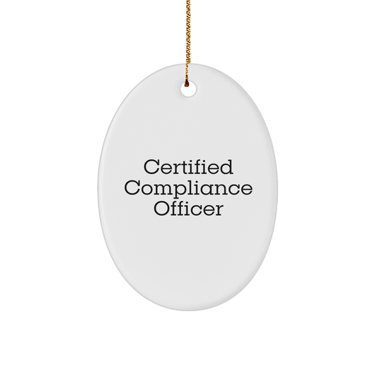 Compliance Officer Gifts from Friends - 'Certified Compliance Officer' Oval Ornament, White, 3.25" Tall, Perfect for Christmas
