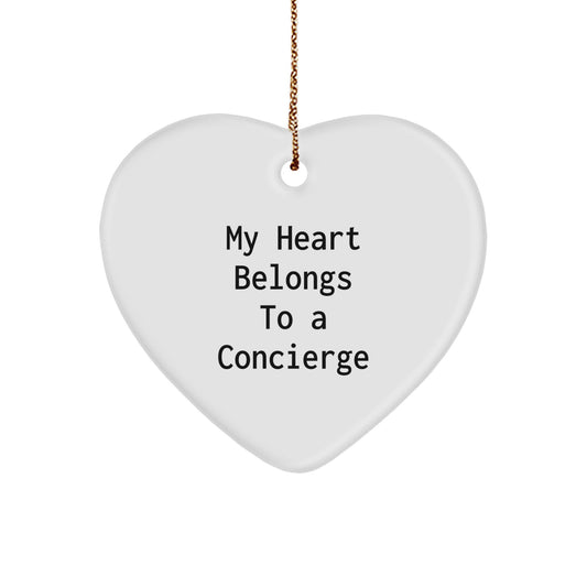 Concierge Gifts from Family, Heart Ornament with Funny Quote 'My Heart Belongs To A Concierge', Christmas Unique Gifts for Her