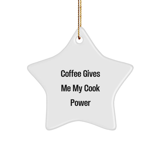 Funny Cook Gifts from Friends - 'Coffee Gives Me My Cook Power' Star Ornament for Christmas