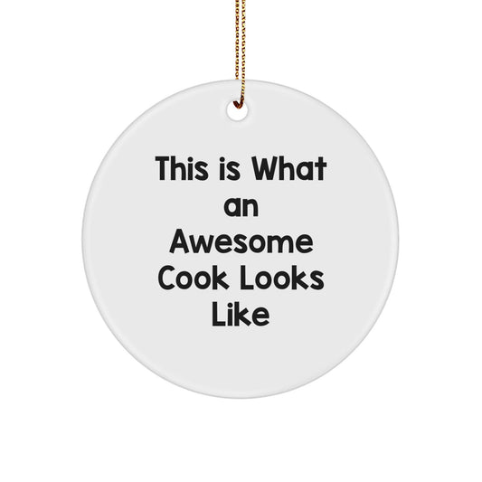 Funny Cook Gifts - This Is What An Awesome Cook Looks Like Circle Ornament for Men or Women Friends Family - White Christmas Decorations