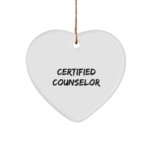 Funny Counselor Gifts from Friends for Christmas - Heart Ornament with Inspirational Quote, Certified Counselor Heart Shaped, Durable MDF Material