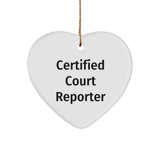 Certified Court Reporter Funny Quote Heart Ornament Gifts for Men, Women, or Coworkers from Family, 2.75'' Tall, 0.5 oz, MDF and High-Gloss Plastic, Vibrant Sublimation Print, Perfect for Christmas