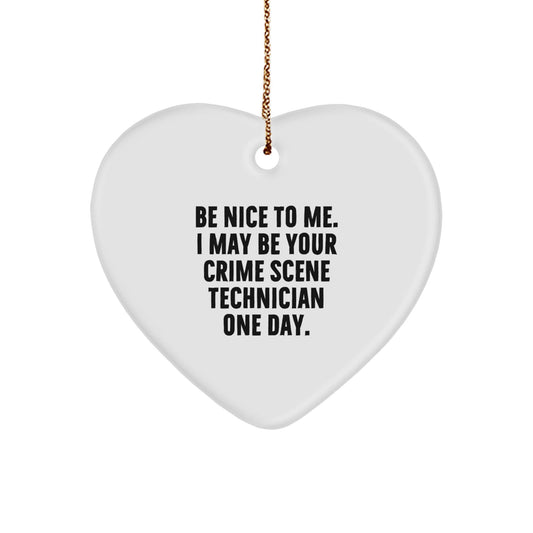 Funny Crime Scene Technician Gifts, Be Nice To Me. I May Be Your Crime Scene Technician One Day., Heart Ornament for Christmas, Gifts from Friends, Gifts for Crime Scene Technician