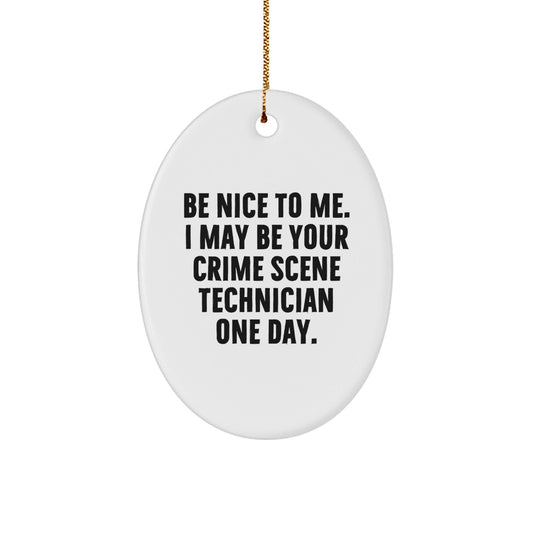 Funny Crime Scene Technician Gifts: Be Nice To Me. I May Be Your Crime Scene Technician One Day. Oval Ornament for Christmas