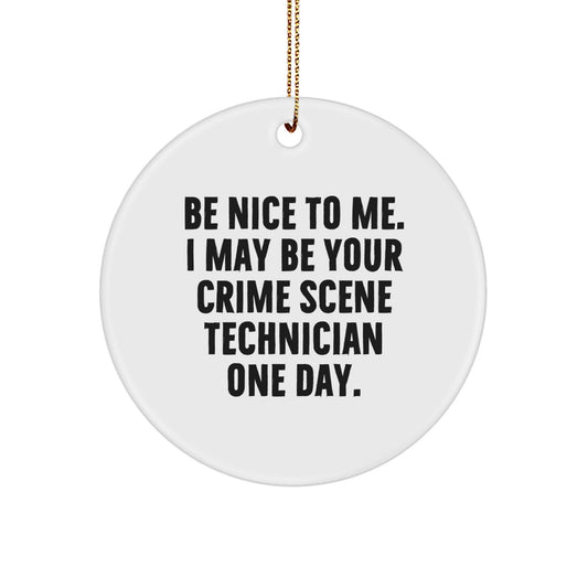 Funny Crime Scene Technician Gifts from Friends - 'Be Nice To Me' Circle Ornament for Christmas