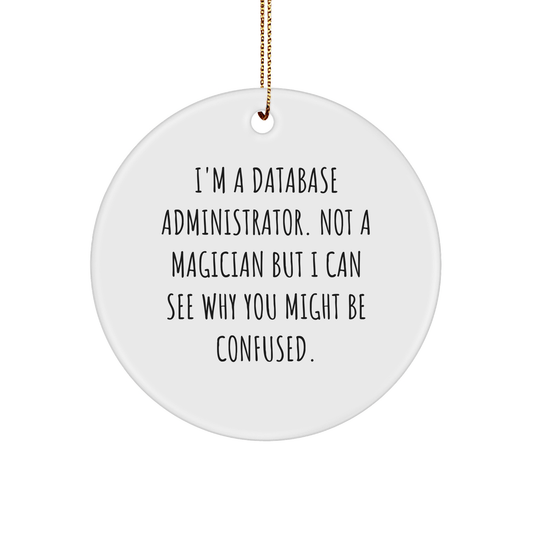 Funny Database Administrator Gifts, 'I'm A Database Administrator. Not A Magician' Circle Ornament for Database Administrator, Gifts from Family, Friends, Coworkers, Perfect for Christmas