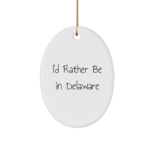 Delaware Oval Ornament, I'd Rather Be In Delaware Funny Quote Gifts for Men from Family, Unique Christmas Decorations